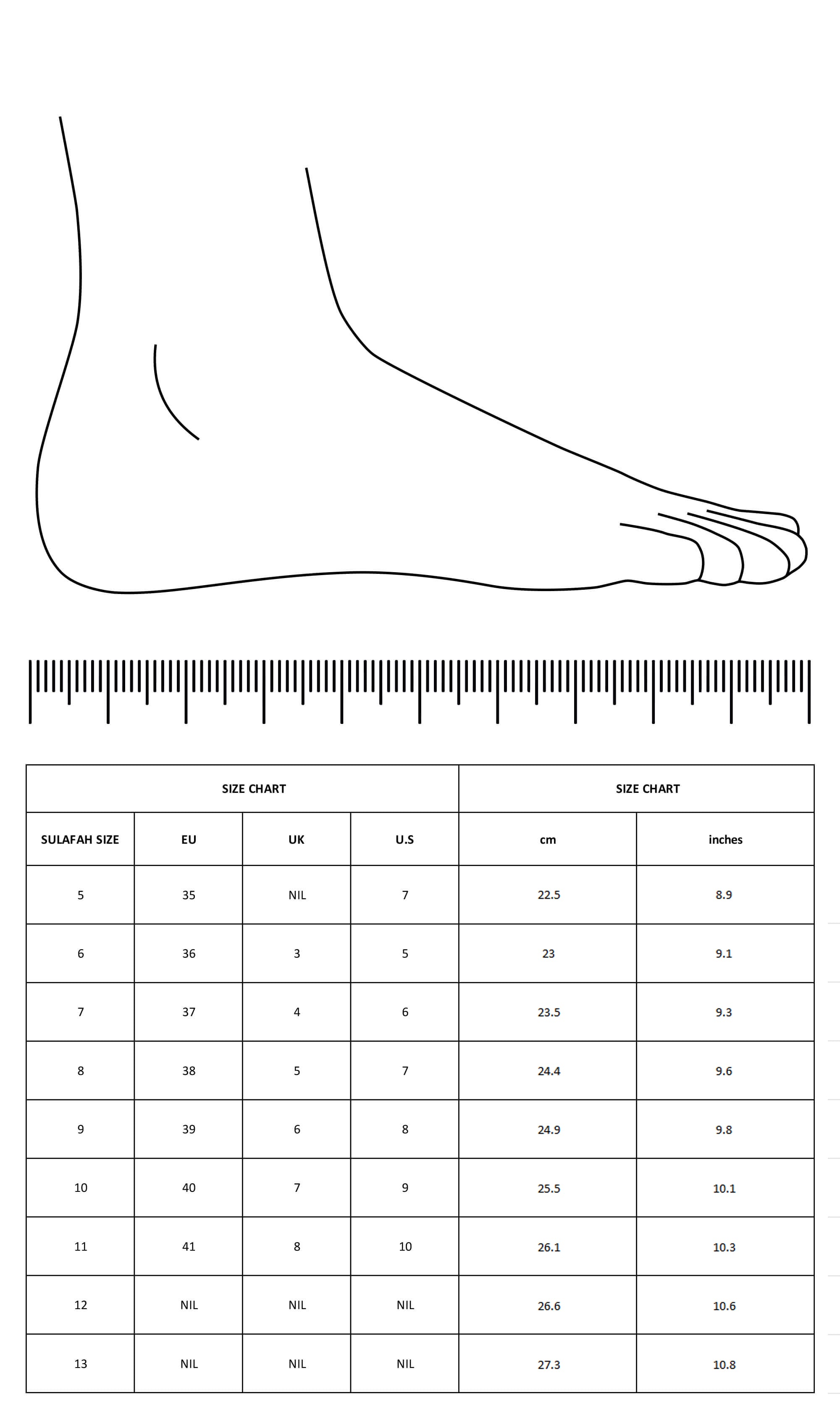 Discover the perfect fit with our shoe size chart. Our shoes are designed to fit true to size, ensuring maximum comfort for your feet. If you find yourself in between sizes, we recommend selecting the next full size up to guarantee a perfect fit. To determine your ideal shoe size, simply measure the length of your foot from heel to toe, with your heel flush against a wall. Our comprehensive size chart will help you find the perfect pair of shoes for your unique foot shape.